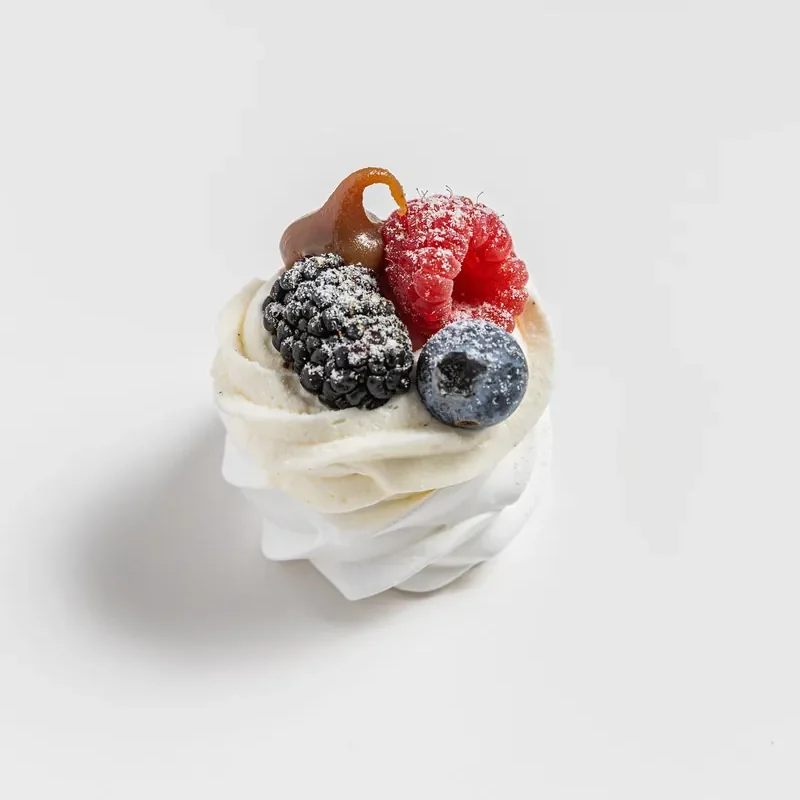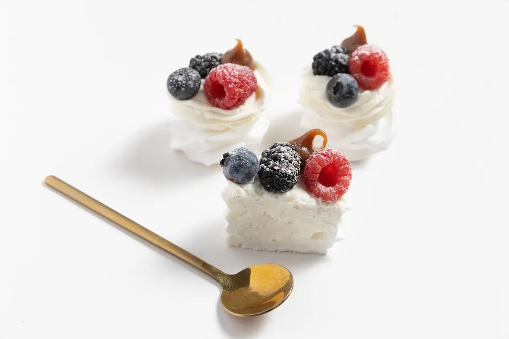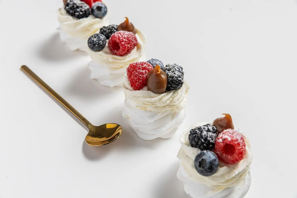 Meringue based dessert. Crisp outside and chewy center topped with chantilly and fresh fruit. Available in Mango and Strawberries. Additional dulce de leche and nutella if requested