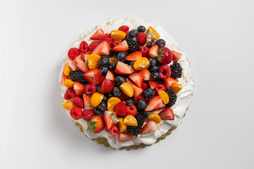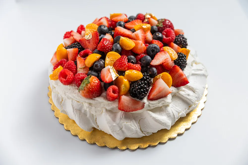 Meringue based dessert. Crisp outside and chewy center topped with chantilly and fresh fruit. Available in Mango and Strawberries. Additional dulce de leche and nutella if requested